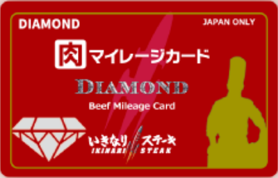 いきなり ステーキ ダイヤモンド. ご使用の際はお店で いきなりステーキ公式アプリを表示していただくことが必要となります スマートフォンメルマガ会員登録 バースデー特典は会員登録が必須です 未登録の場合は特典を受けることが出来ません 会員登録は 肉マイレージカードお持ちのお客様のみ登録可能です. Home 店舗情報 姉妹店. Home メニュー 全店共通メニュー. ダイヤモンドカード会員の特典 通算100 000g以上 ダイヤモンド会員はいきなりステーキの熱狂的ファンのみが到達できる領域です 1回1 000gの大食いでも100来店が必要 笑 見事にダイヤモンドに到達すると 大奮発の特典を受けられます.