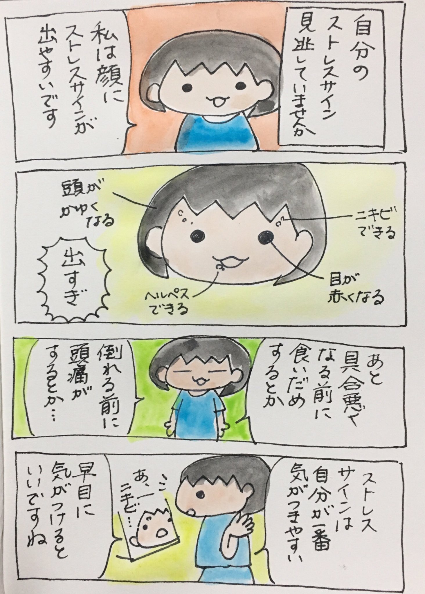 まい𓃴 A Twitter 自分のストレスサインって知っていますか 体調が悪くなると出てくるこれらのサインをいち早く発見することで 病気が長引くのを防げます 模索中のまいちゃん ストレスサイン ストレス ニキビ ヘルペス 充血 頭痛 体調不良 Https T Co