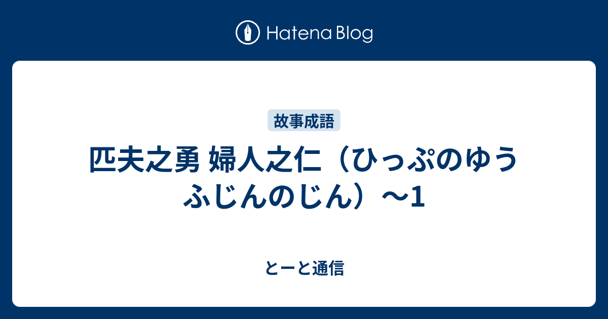 匹夫之勇 婦人之仁 ひっぷのゆう ふじんのじん 1 とーと通信