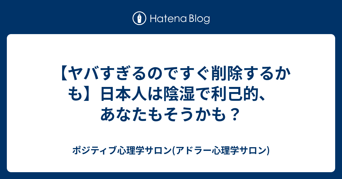 ヤバすぎるのですぐ削除するかも 日本人は陰湿で利己的 あなたもそうかも ポジティブ心理学サロン アドラー心理学サロン
