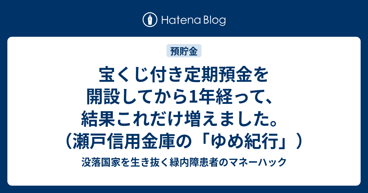 宝くじ付き定期預金を開設してから1年経って 結果これだけ増えました 瀬戸信用金庫の ゆめ紀行 没落国家を生き抜く緑内障患者のマネーハック