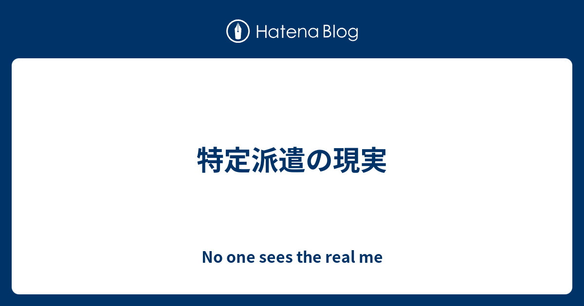 特定派遣の現実 No One Sees The Real Me
