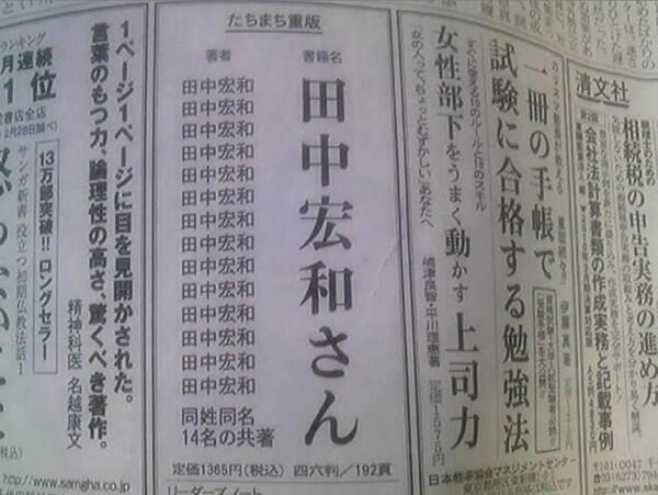 史上初 同姓同名本 著者は14人の 田中宏和さん J Cast トレンド 全文表示