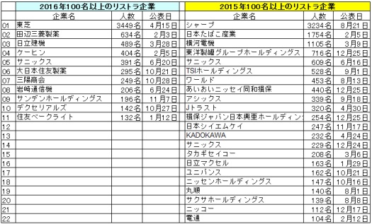 2016年大量のリストラ人員削減した企業 2017 1 18 水 おやじの主張 リストラ天国 日記