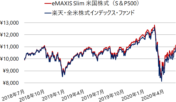 1 000億円超 Emaxis Slim 米国株式 S P500 楽天 全米株式インデックス ファンド 実質コストや運用実績を比較 評価 Nisaで積立投資手帳