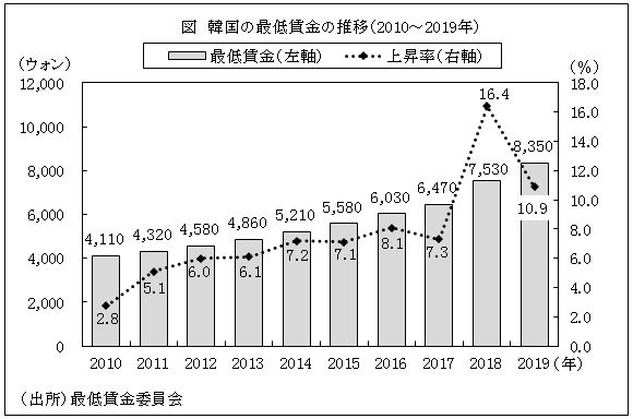 2019年の最低賃金 時給 は10 9 増の8 350ウォンに 韓国 ビジネス短信 ジェトロ