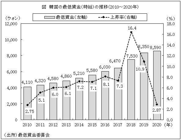2020年の最低賃金 時給 は2 87 増の8 590ウォンに 韓国 ビジネス短信 ジェトロ