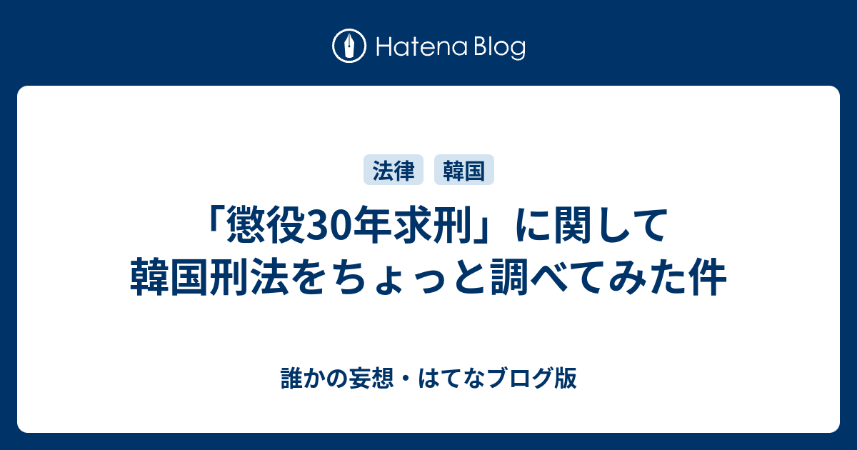 懲役30年求刑 に関して韓国刑法をちょっと調べてみた件 誰かの妄想 はてなブログ版